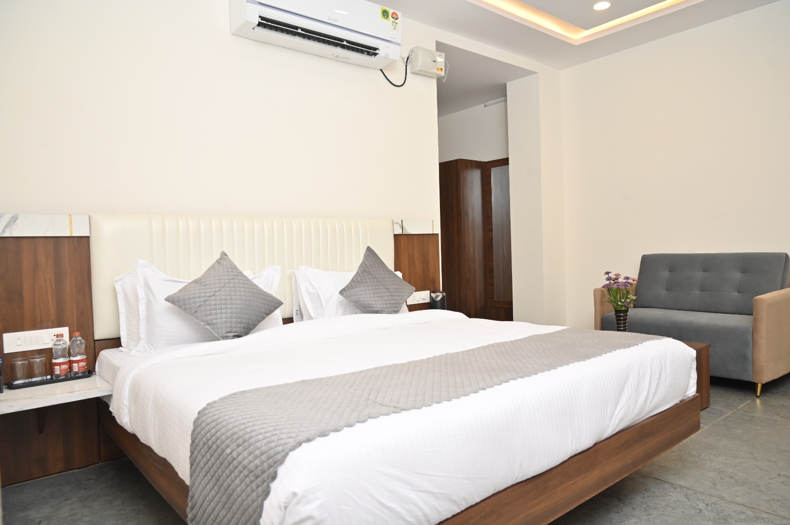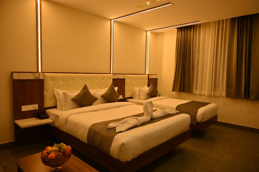 Nestled close to the spiritual and scenic town of Murudeshwar, our hotel combines comfort, convenience, and affordability. Whether you’re visiting the famous Murudeshwar Temple, exploring the beaches of coastal Karnataka, or traveling for business, we provide everything you need for a relaxed stay. With modern interiors, professional service, and thoughtful amenities, our mission is to make you feel at home away from home.